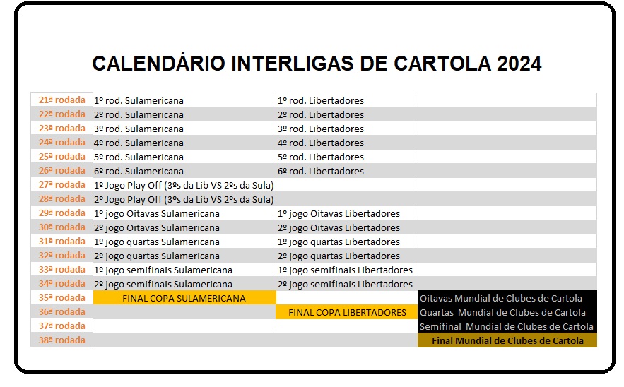 Já o mundial, com início previsto na rodada 35, sofrerá apenas uma alteração: a não participação do campeão da Sulamericana na competição. Em temporadas anteriores, clube campeão da Sulamericana, assim como o da Libertadores, ingressava diretamente nas semifinais. Este ano, apenas o campeão da Libertadores e o da Champions League de Clubes (a ser criada), terão vaga direta nas semifinais.