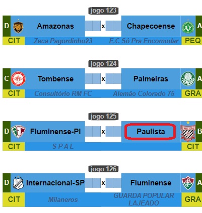 Em caso de empate, a vantagem é do Paulista, clube da Série B, frente ao não divisionado "fluzinho". O vencedor pegará o poderoso Flamengo, comandado por "Catheringer FC",