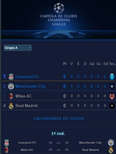 Já a Champions League (apenas clubes de elite da Europa), programada para o segundo turno, conseguimos tirar do papel, com a estréia marcada para a rodada 24/24.