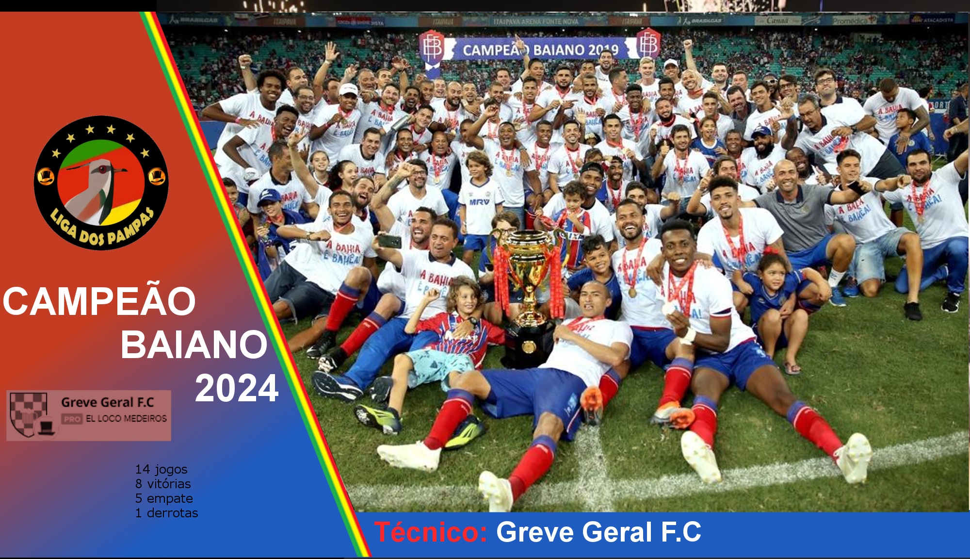 Já na Bahia, Greve Geral, treinando o "tricolor de aço" desde a rodada 13 de 2023, garantiu o terceiro título em sua carreira, agora: Campeão da Sèrie C 2021, do Estadual do Norte 2022 e por último o Campeonato Baiano de 2024. Parabéns, Greve Geral: essa conquista não haverá de ser esquecida! VOLTAR