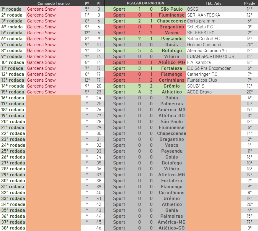 Embalado pela segunda vitória consecutiva, Sport Recife, atual campeão do Nacional e comandado pelo mestre “Gardena Show” desde a rodada 1 de 2023, assumiu a sexta colocação da divisão de elite, a somente cinco pontos do Vasco da Gama, que empatou em 3 x 3 com o São Paulo e fecha 10 rodadas seguidas na liderança do Campeonato.