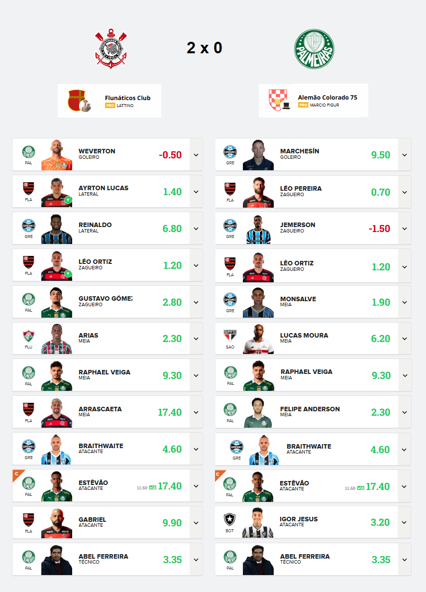 Decisão do "Alemão Colorado 75" de não escalar o meia flamenguista Arrascaeta no jogo contra o Juventude, preterido pelo são-paulino "Luciano Almeida", a jogar fora de casa contra o Criciúma, acabou custando uma pontuação abaixo da margem de abertura de placar (60pts), marcando 58pts contra os 75 construídos pela formação de caráter mais conservador montada pelo "Flunáticos Club", principalmente impulsionada pelos 17,4pts registrados por Arrascaeta.