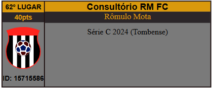 Com o título, o Consultório RM FC, do cartoleiro Rômulo Mota, saltou da posição não definida para 62ª posição do ranking geral dos melhores treinadores de todos os tempos,